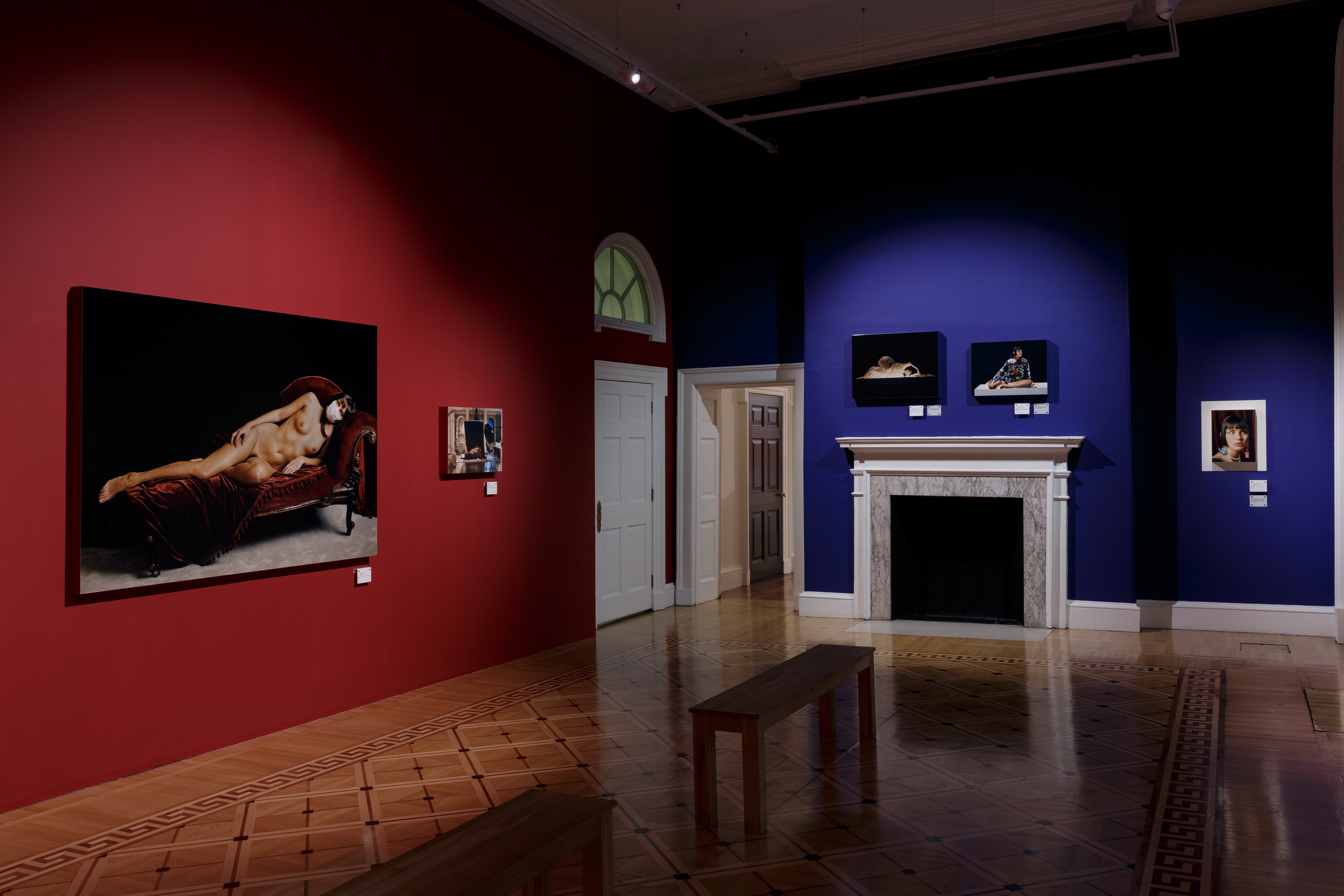 Hanna Moon presented a dramatic reimagining of Somerset House’s neoclassical setting. She captured imagery of her two muses; Moffy, from London, and Heejin, from South Korea, at night, ‘invading’ the site to create a series of intimate works, featuring built sets and objects that reflect her personal experiences living in UK. Taking inspiration from Western historic portraiture, the garments Moffy and Heejin wear are by fashion designers who hold a place within British cultural history, such as Vivienne Westwood, Stephen Jones and Alexander McQueen.